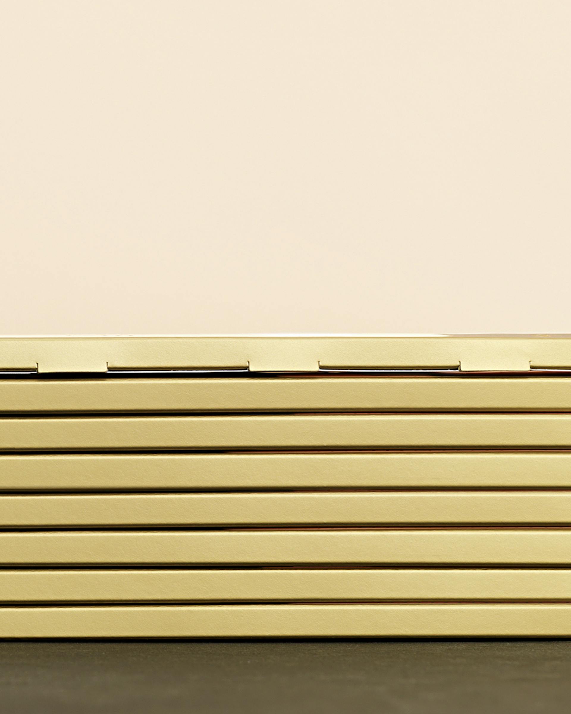 Pures Gold. Als Hommage an Ivan Le Jeune´s Qualitäts-Manifesto und sein erstes Leben als Schweizer Bankier, erinnern alle Schokoladen in Format, Farbe und Form an einen Goldbarren.