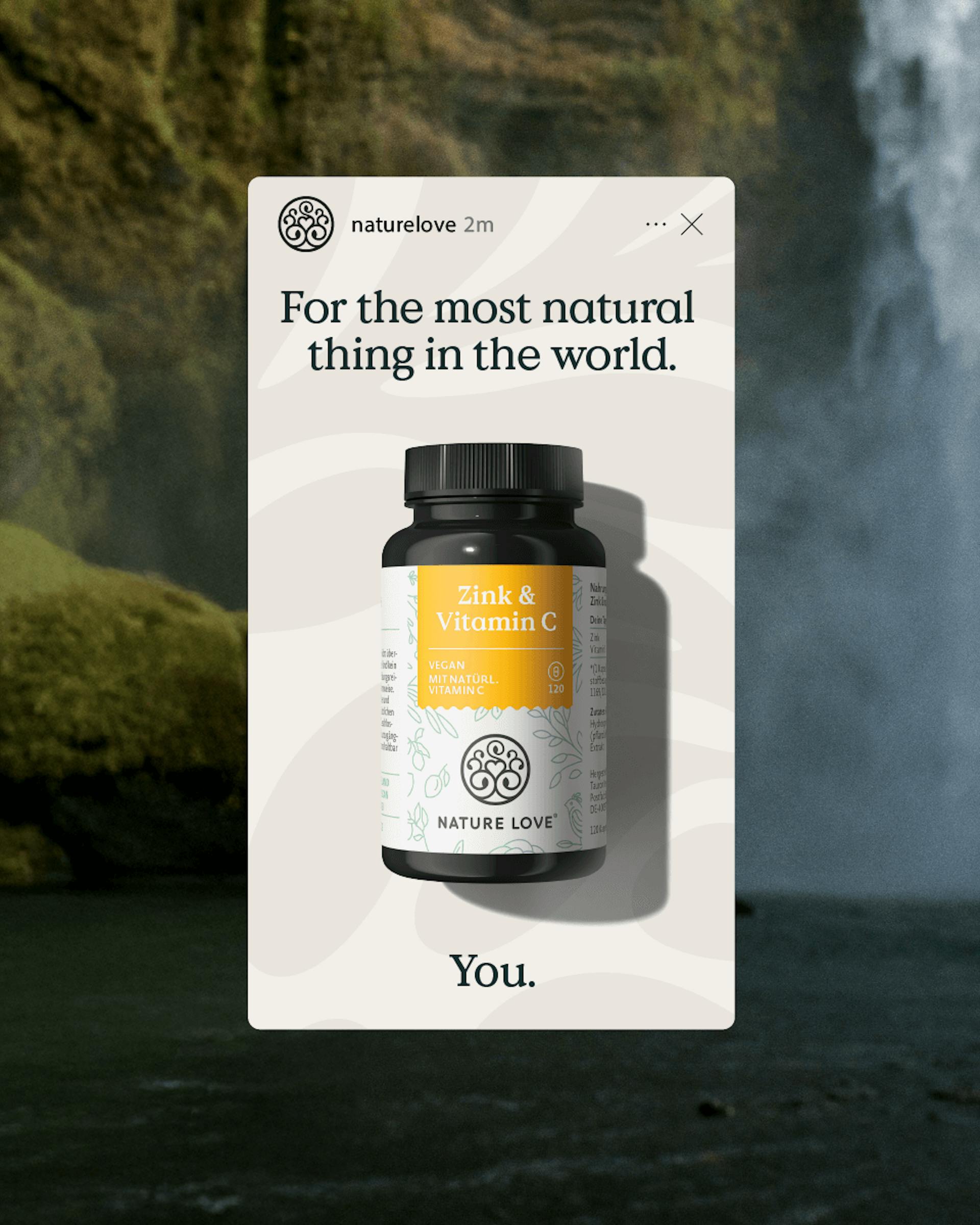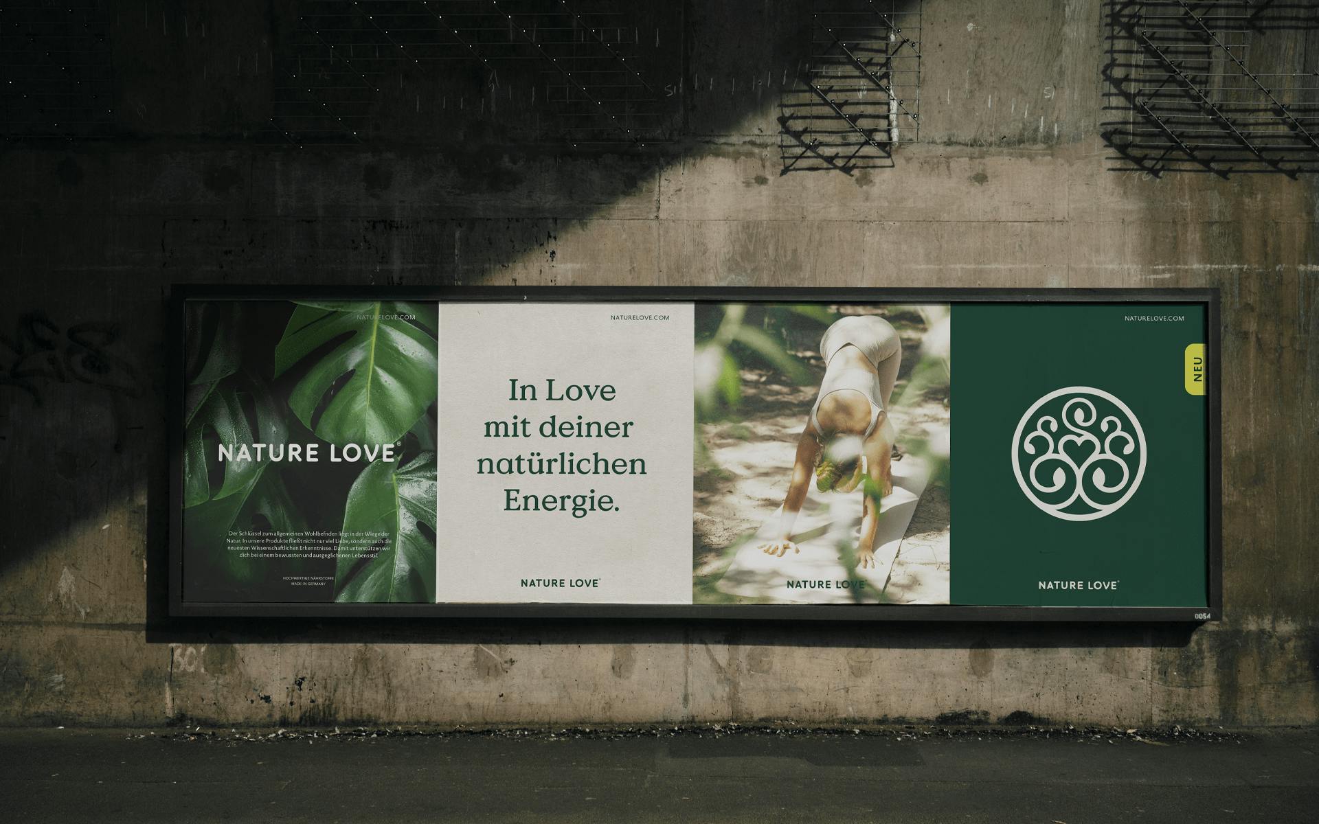 Nature Love ist die Naturgewalt im Bereich Nahrungsergänzungsmittel. Unsere Aufgabe war es, die Marke noch näher an ihrem Kern zu positionieren und visuell konsequenter auf die Kraft der Natürlichkeit auszurichten.